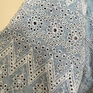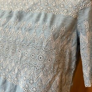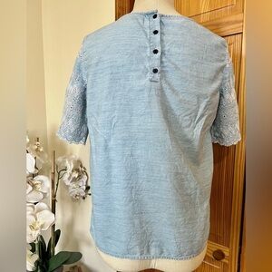GAP Medium Denim Embroidered Short Sleeve Scalloped Spring Summer Shirt Granny