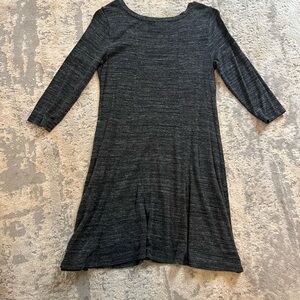 Swingy and sweet! This is soft and in a flattering cut! Feminine and versatile in a neutral charcoal. Great with almost any shoe!