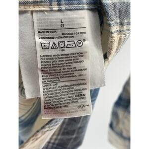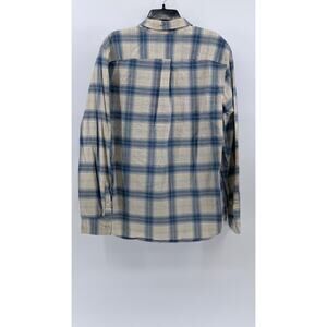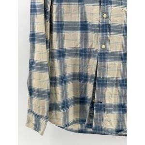 GAP Men's Blue-Cream Plaid Button-Up Long Sleeve Standard-Fit Oxford Shirt SZ L