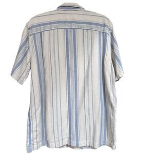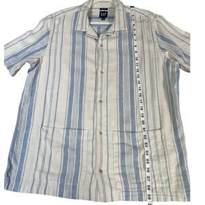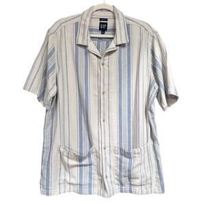 GAP Men’s Linen Cotton Striped Shirt L Short Sleeve Blue Beach Casual