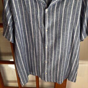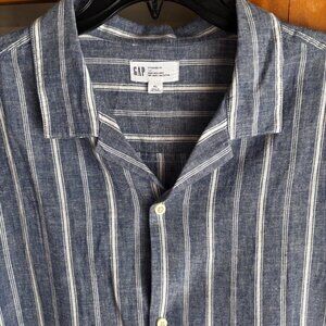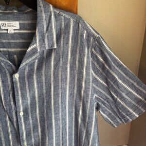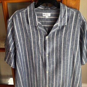 GAP Men's Linen-Cotton short sleeve striped button down shirt SZ: XL