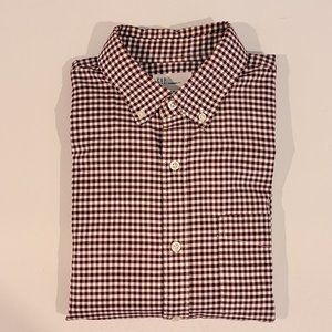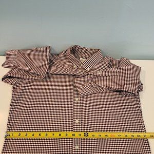 GAP Men's Medium Standard Fit Long Sleeve Heavy Weight Oxford 100% Cotton. Button down collar. Single chest pocket. Standard fit. 100% cotton. White and burgundy tiny gingham. Shirt is in excellent used condition. Please see photos for measurements and details.