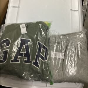 Stylish GAP Olive green Hoodie AND gray joggers. Ideal for relaxed outings.