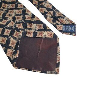 Elegant men's silk tie featuring geometric square patterns in multicolor. Crafted in the USA, high-quality vintage detailing. Versatile choice for adding sophistication to formal wear.
