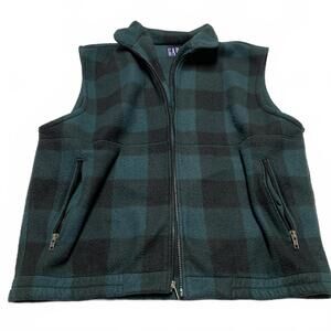 GAP Men's Size Large Buffalo Plaid Green Black Checkered Fleece Vest