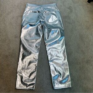 GAP Metallic Silver High Rise Vegan Faux Leather Cheeky Straight Pants Sz 29