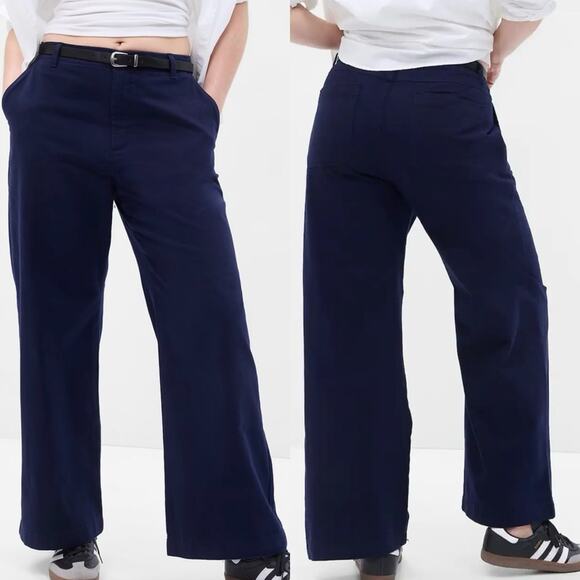 GAP Mid-Rise Loose Straight Leg Khakis In Navy Uniform Size 10 Preppy Office