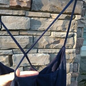 Gap Navy Blue Multi Stripe Cami Tank Handkerchief Spaghetti Cross Strap Dress