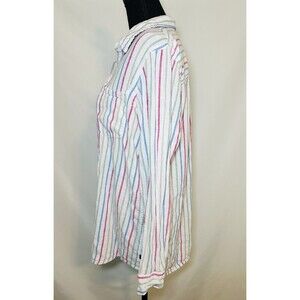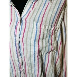 GAP Multi-Color Stripe Linen Blend Long Sleeve Button Up Shirt Top Women's LARGE