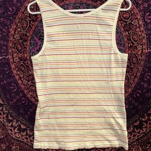 GAP tank tops featuring a vibrant multicolor stripe and a classic gray design. Perfect for layering this coming fall under sweaters and sweatshirts 💕🍁
