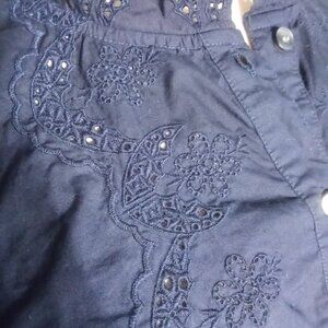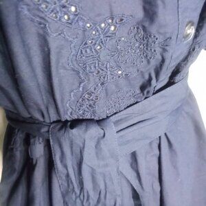 GAP NAVY Puff Sleeve Eyelet Mini Dress Eyelet Mini Shirtdress sz L