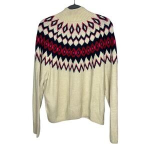 GAP NWT Relaxed Fair Isle Mockneck Sweater Cream Pink Green Winter Preppy XL