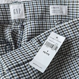 GAP NWT Signature Mini Houndstooth Blue Black Skinny Ankle Pants Women's 4 Petite