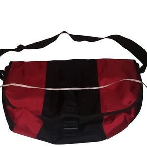 GAP LIGHTWEIGHT, COMPACT DURABLE NYLON BUCKLE MESSENGER BAG W/ ADJUSTABLE STRAPS AND SUPER SECURE VELCRO CLOSURE AND SNAP IN BUCKLE. INSIDE POCKET FOR ELECTRONICS or sunglasses with zipper, side mesh pockets for water bottles, back laptop pocket with velcro closure & fabric handle. Plastic zippered pocket inside for pens pencils personal items. This is cranberry red color. Ideal for DAY in Day Out versatility! Originally $58 Excellent used condition!! No wear marks!!pet,smoke-free corona virus free home!