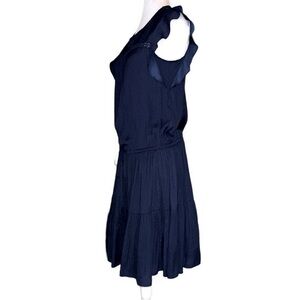 GAP Navy Blue Dress Drop Waist with Drawstring Pleats Lined Ruffle Cap Sleeves