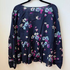 GAP Navy Blue Floral Blouse with Bell Long Sleeves XXL - NWT