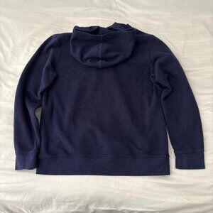 GAP navy blue hoodie with embroidered white logo. Size is Women's L. Measurements in photos. Thanks for looking! #embroidered #gap #hoodie