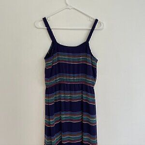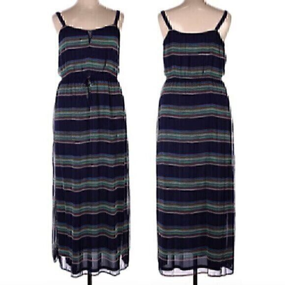 GAP Navy Blue Red White Multi Striped Sleeveless Tie Waist Blouson Maxi Dress M