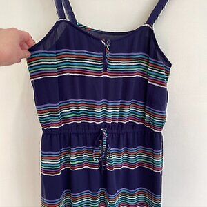 - navy blue / red / white / purple / green / blue / multi multicolor horizontal striped sleeveless blouson blouseon dress
