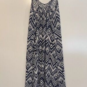 GAP Navy Blue White Geometric Print Maxi Dress Womens Size XS (1235)
