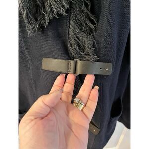 GAP Navy Fringe Front Buckle Cardigan Sweater sz L EUC