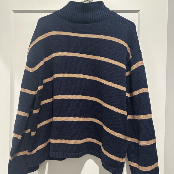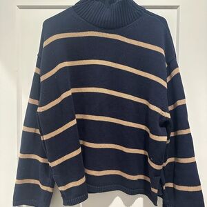 Classic navy sweater with ribbed texture and striped!! Light sweater perfect for layering in every season! I just don’t reach for it enough.