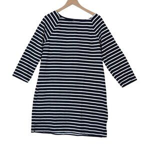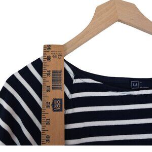This classic striped shift dress by GAP blends timeless nautical charm with modern minimalism. Featuring a bateau neckline, three-quarter sleeves, and an easy, relaxed silhouette, it's the perfect piece for effortless styling. Crafted from 100% cotton jersey with natural give, this piece offers breathable comfort in a versatile navy and white stripe. Size XL. 3/4 sleeve