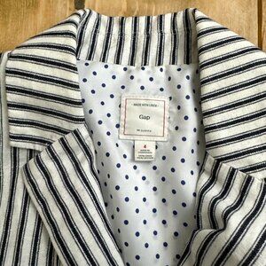 GAP Navy and White Ticking Blazer Jacket Linen Cotton 4