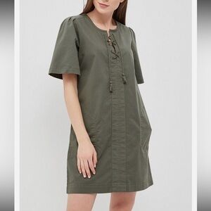 GAP Neutral Lace-Up Shift Dress Size S Petite Baby Tweed in Green Casual Dress