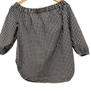 GAP Off-Shoulder Tunic Shirt in Poplin Black white Gingham Women’s size Small