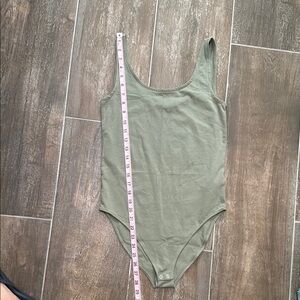 Stylish olive green bodysuit. Sleeveless design. Perfect for layering. EUC comes from a free home.