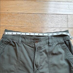 Stylish olive green shorts from GAP. Features an elastic waistband for comfort and two front and two rear pockets. Has zipper and button closure. In great condition with no stains, holes or tears. From a non-smoking home.