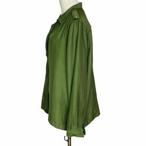 GAP Olive Green Satin Button Down Blouse XL 2485