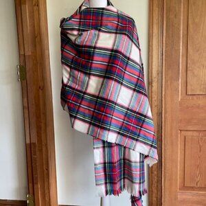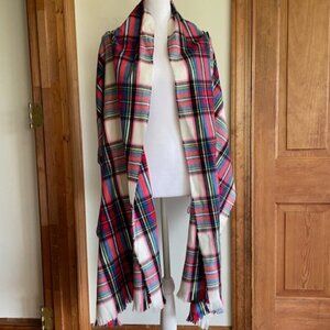 GAP Oversized Cozy Frayed Soft Red Green Plaid Scarf @ 83" x 25"