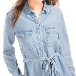 Classic Western Chic Office Casualcore Classiccore GAP Patch Pocket Shirt Dress Chambray Denim Belt Blue Indigo Women’s XS Classic Retro Normcore Western Office
