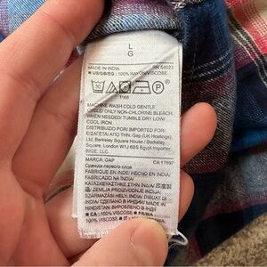 This pink and blue flannel button down from the Gap + Pendleton collaboration is made of the absolute softest rayon fabric that drapes beautifully. It has no stains, holes or even pulling which makes me believe it was worn very little if at all. In excellent condition. 21” pit to pit, 27” length, 23” sleeves.