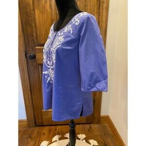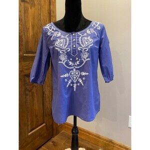 GAP Periwinkle 3/4 Sleeve Embroidery Boho Peasant Blouse Womens Size Medium Top DB21
