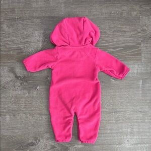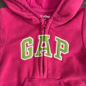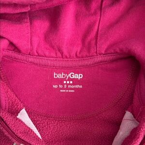 Adorable pink hooded onesie by GAP. Features a front zipper and cozy design.