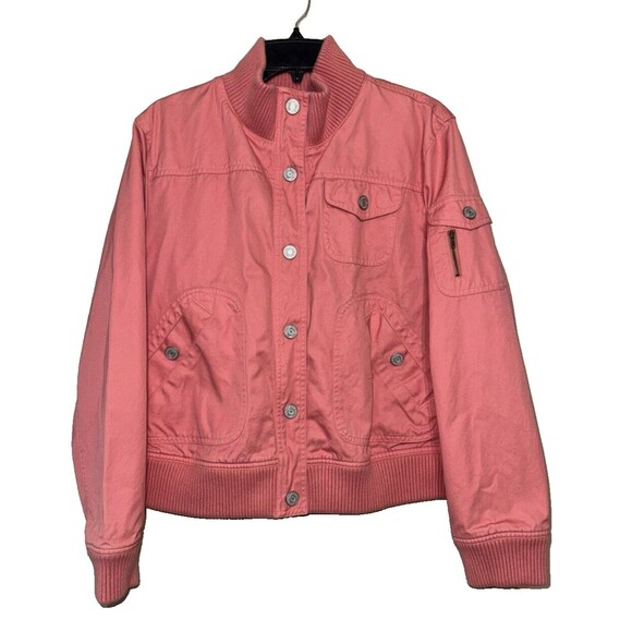 GAP Pink Bomber Stadium Snap Front Women's Jacket Size XL Snaps & Pockets