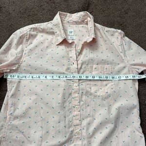Pink clip dot button down shirt by the GAP! The fitted boyfriend shirt style. Size Medium. In great condition!