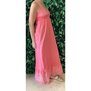 🌺 GAP Pink Embroidered Cotton Maxi Dress – Adjustable Straps, Size XS