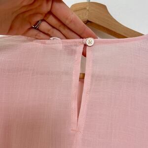 a soft, feminine take on a timeless classic 🌸 this gap blouse features a romantic rosy pink hue with delicate lace paneling across the bodice and subtle shoulder ruffle detail. designed with a round neckline, long sleeves, and a keyhole button closure at the back for a touch of vintage charm. light, breathable fabric that drapes beautifully—perfect tucked into trousers, layered under knits, or styled with denim for a cottagecore-inspired everyday look.