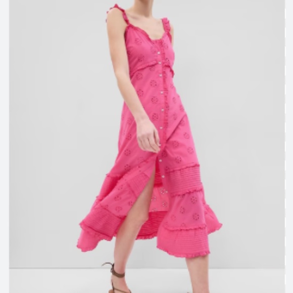 GAP Pink Ruffle Hem Eyelet Maxi Dress - Size Petite L