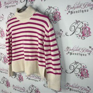 Chic turtleneck with bold pink and cream stripes. Ideal for casual wear. Xl. Kids.