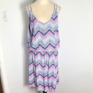 GAP Pink,Blue & White Chevron Patterned Sleeveless Dress, Size XXL