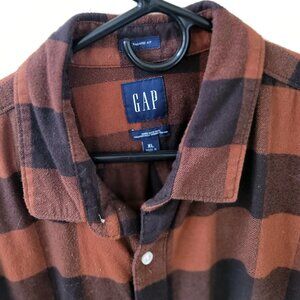 Elevate your cold-weather style with this XL GAP plaid flannel shirt, designed in rich rust and brown hues for a warm, sophisticated look. Crafted from soft, cozy flannel, this shirt offers the perfect blend of comfort and durability—ideal for layering or wearing on its own. Featuring a classic button-up front and versatile plaid pattern, it's the go-to choice for staying stylish and comfortable during autumn and winter. Whether for casual outings or relaxing at home, this GAP shirt is your essential wardrobe upgrade.