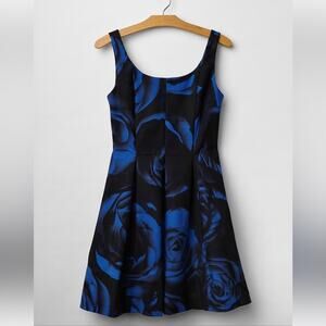 GAP Pleated Dress Fit N Flare Blue & Black rose print Dress Size 6. Easter