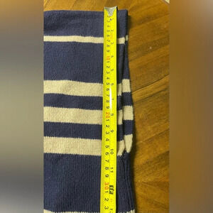 This is a listing for a preowned GAP Poncho cardigan Cotton Wool blend Boho Striped sweater ONE SIZE Navy Camel. The condition is good, no stains or holes,approximate measurements in photos. Please see all photos for details as they are part of the description.