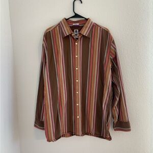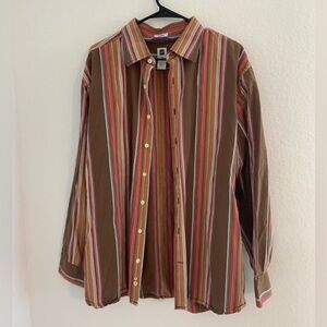 GAP Premium Y2K Striped Button Down Shirt Brown Multicolor
