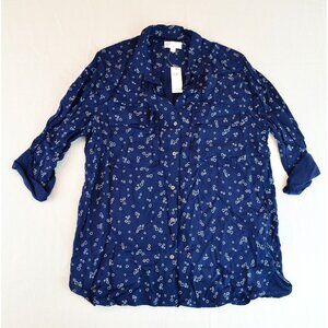 GAP Print Utility Drapy Boyfriend Shirt Tiny Heart White Blue New Large